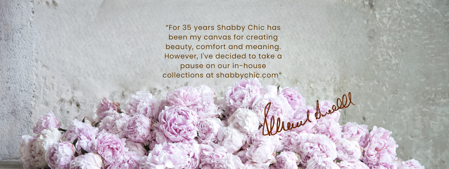 Since 1989, Rachel Ashwell® Shabby Chic® has been your source for beautiful heirloom pieces that combine all the best of modern style and classic farmhouse charm. We cherish the beauty of imperfection: authentic time-worn patinas and handcrafted accents. Here in our online store, you can find everything from custom furniture handmade in Los Angeles to vintage accessories hand-picked by Rachel from around the world. Authentic vintage-inspired beauty, Rachel’s signature palette and our hand-crafted bedding and accessories are truly unique and what we like to consider future heirlooms.